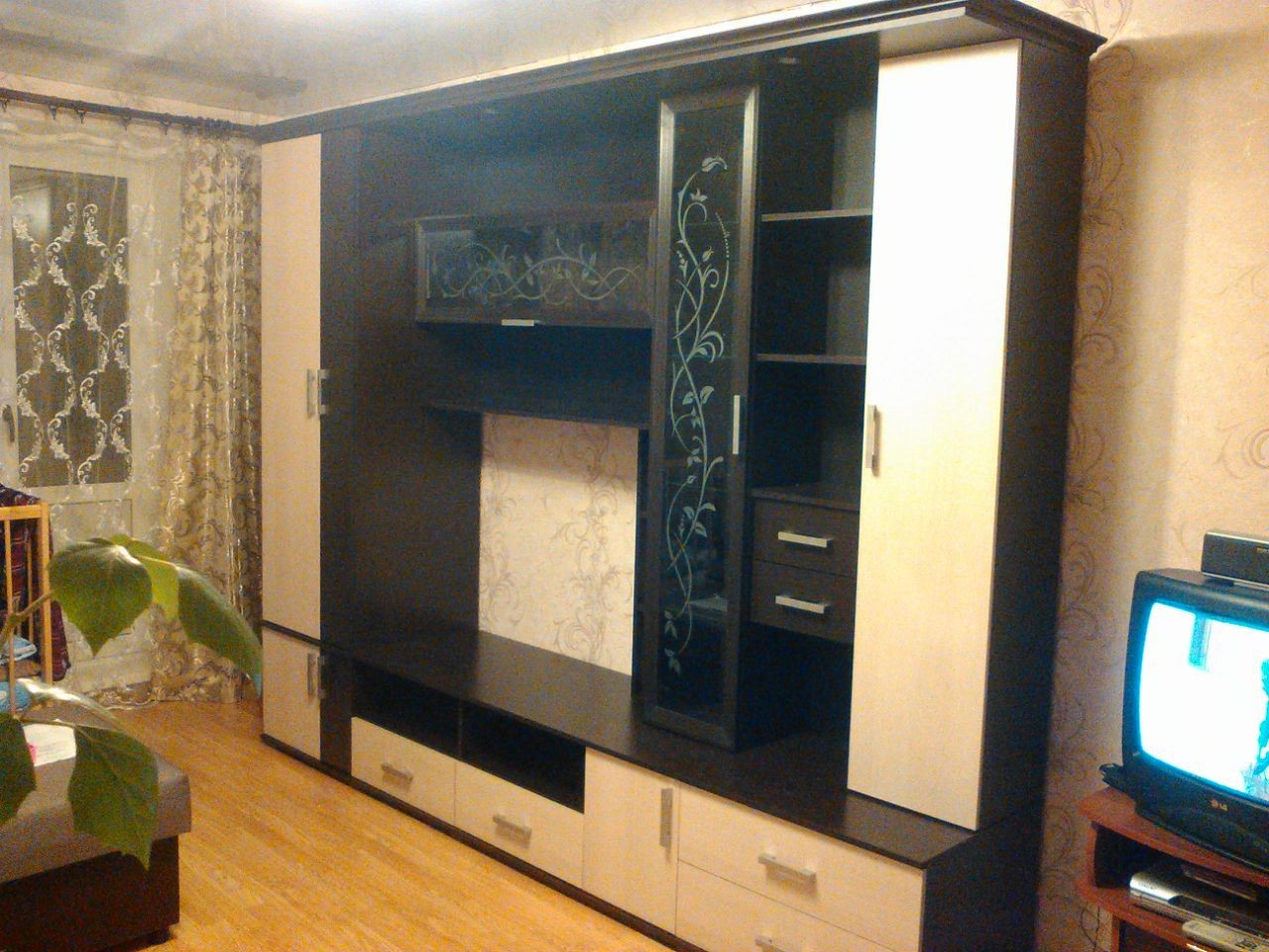 Функциональная и вместительная стенка «Глория-5», идеально вписывающаяся в современные гостиные. Слева располагается платяной шкаф с глухими створками, справа – блок с распашной глухой створкой и стеклянной, которая декорирована красивым пескоструйным рисунком. Между дверцами имеются полки и два небольших выдвижных ящика для хранения мелочей. Центральная часть оборудована нишей с откидной створкой, полкой и нишей для TV. Нижний блок шкафа имеет четыре выдвижных ящика и отделы с глухими створками и без них.